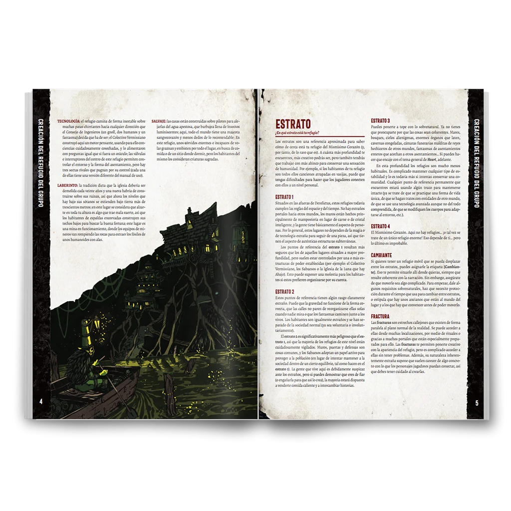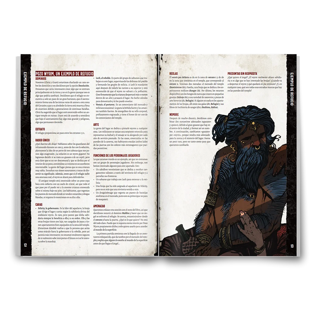 Sanctum es un suplemento para el juego de rol Heart. En su interior encontrarás una guía para construir refugios con tu grupo y crear la base para una emocionante campaña. También encontrarás consejos sobre cómo dirigir campañas basadas en refugios, que reflejan las pruebas y tribulaciones que debe afrontar tu asentamiento, junto con formas de crear y reforzar los lazos del grupo con la gente del lugar.