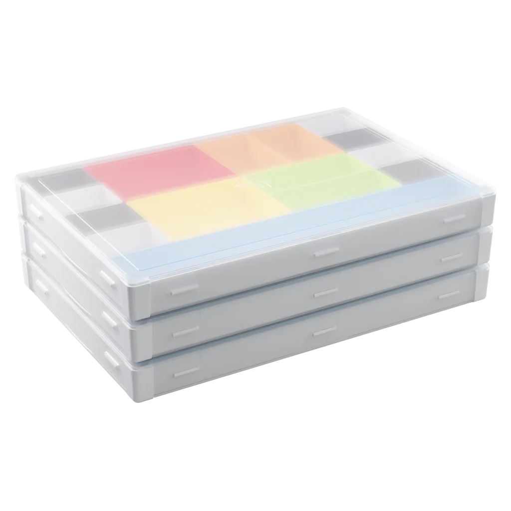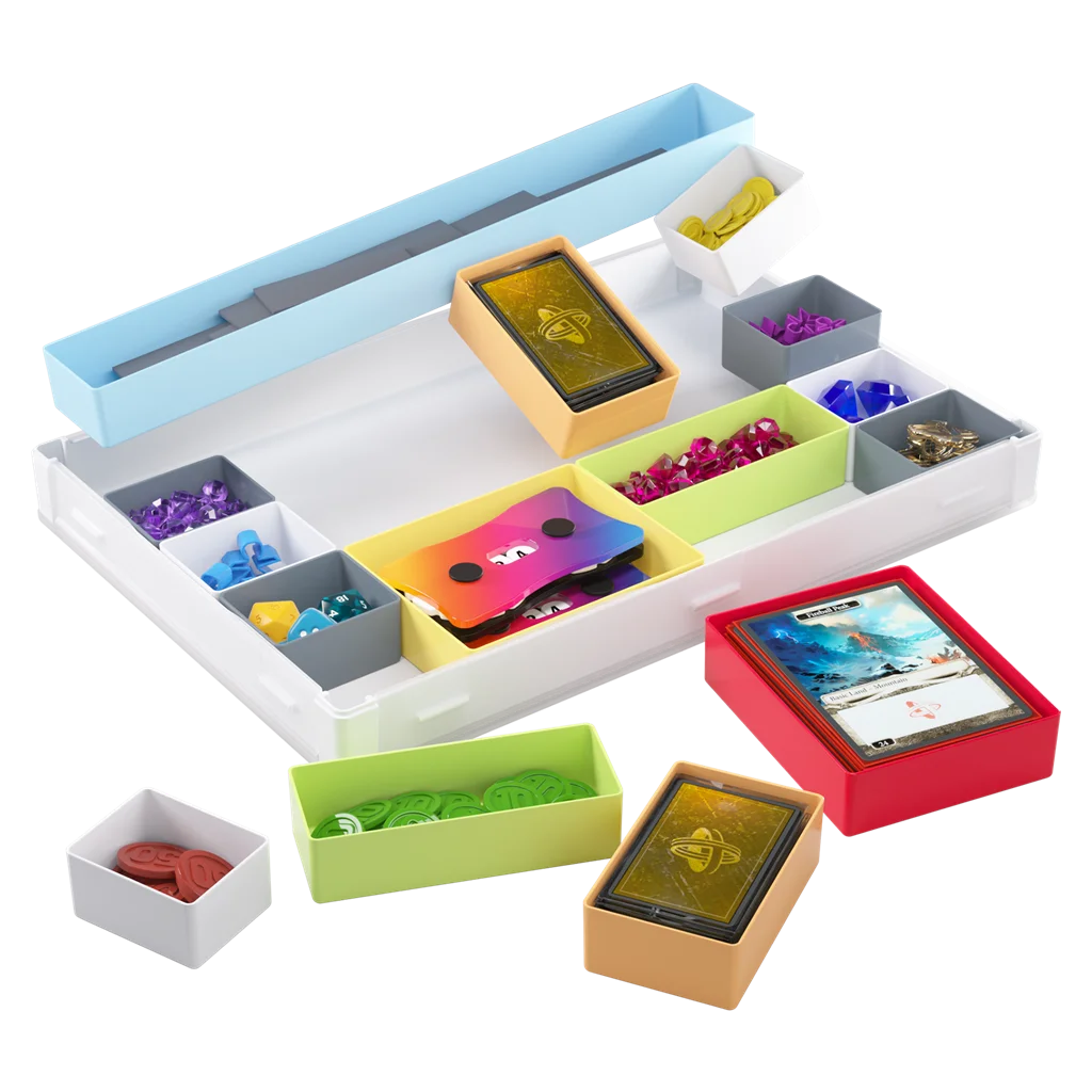 Este complemento Gamegenic es perfecto para almacenar y organizar fichas, cartas, diales, dados y muchos otros accesorios. Tiene 15 bandejas de tamaños diferentes entre las que se incluyen 2 bandejas para cartas de tamaño americano mini, 2 para cartas de tamaño estándar y 1 bandeja extralarga. Todas estas bandejas son extraíbes y se pueden intercambiar por bandejas del modelo original Token Silo y del modelo Token Silo Cards Add-on, de manera que podrás personalizar la caja a tu antojo. Su tapa completamente extraíble permite acceder fácilmente a todos los componentes y ahorra espacio en la mesa de juego.