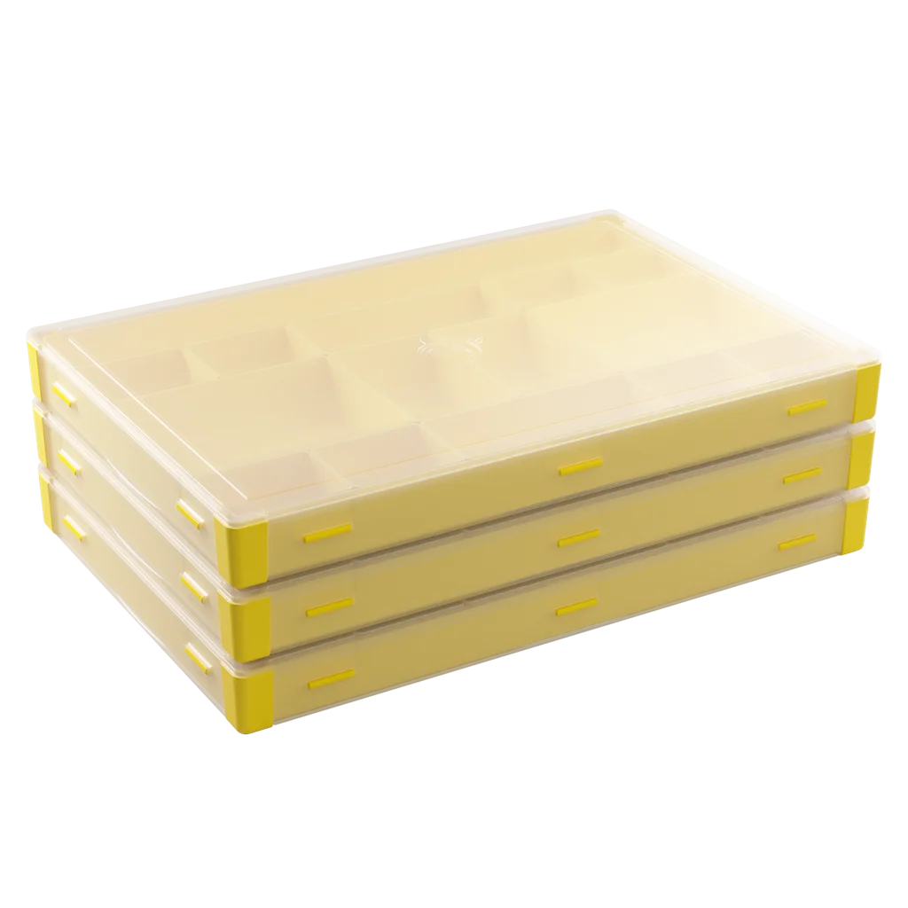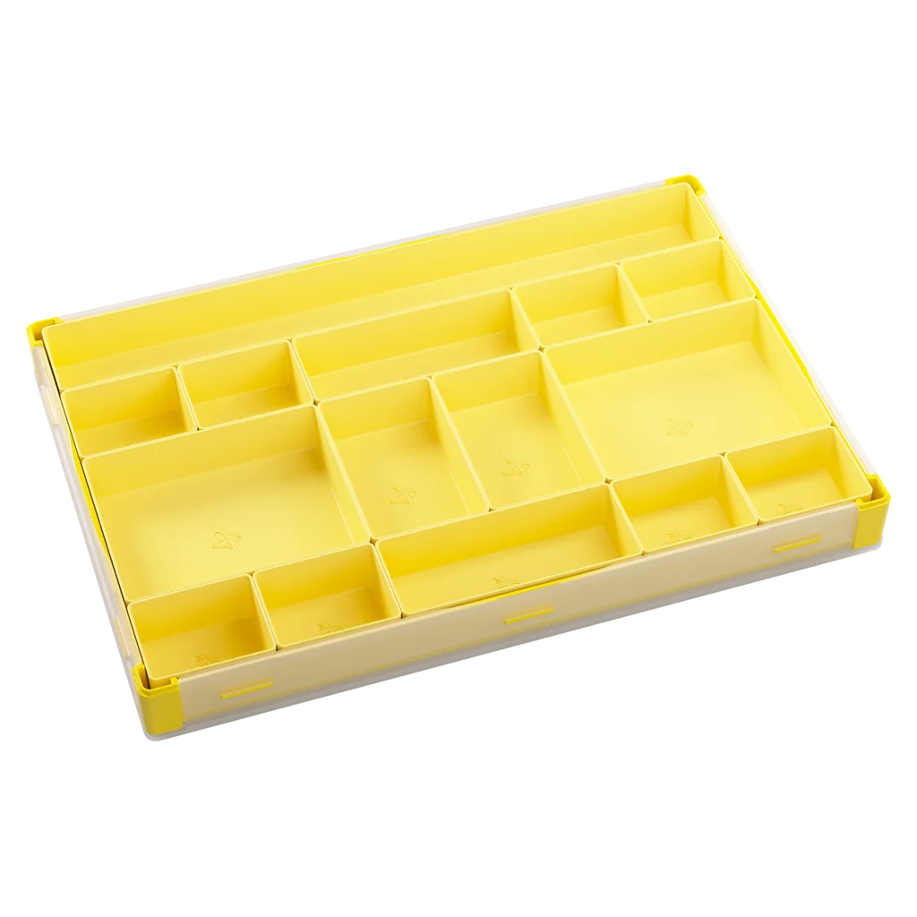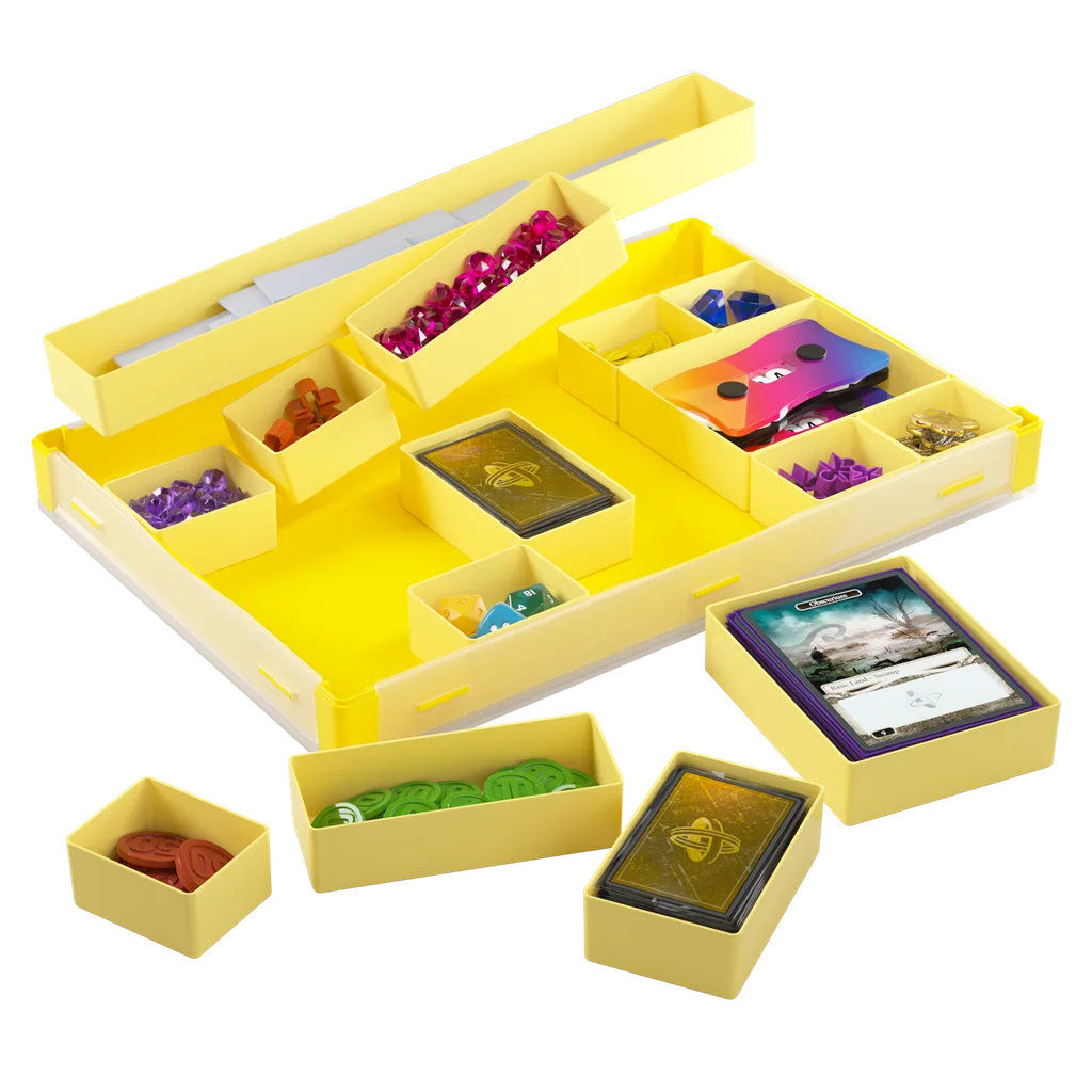 Este complemento Gamegenic es perfecto para almacenar y organizar fichas, cartas, diales, dados y muchos otros accesorios. Tiene 15 bandejas de tamaños diferentes entre las que se incluyen 2 bandejas para cartas de tamaño americano mini, 2 para cartas de tamaño estándar y 1 bandeja extralarga. Todas estas bandejas son extraíbes y se pueden intercambiar por bandejas del modelo original Token Silo y del modelo Token Silo Cards Add-on, de manera que podrás personalizar la caja a tu antojo. Su tapa completamente extraíble permite acceder fácilmente a todos los componentes y ahorra espacio en la mesa de juego.