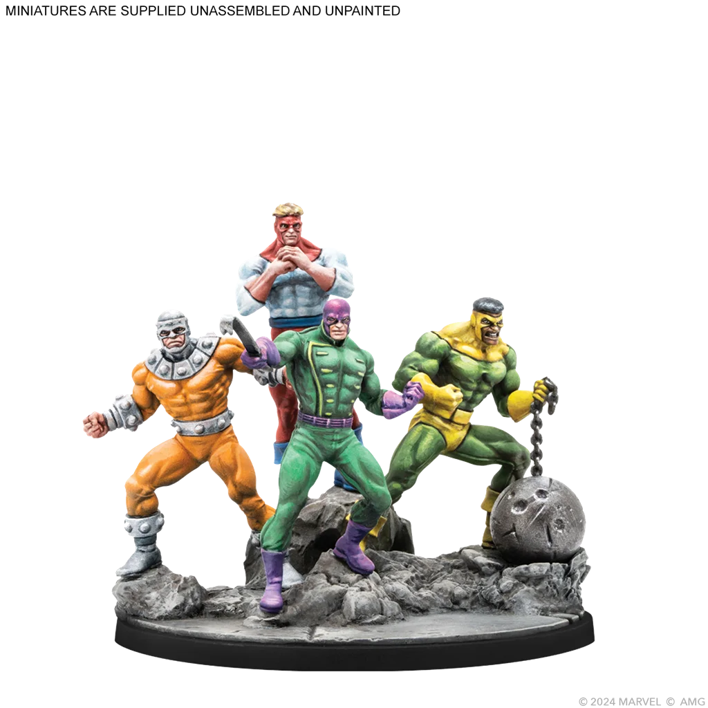 1 miniatura de Abominación, 1 miniatura de Brigada de demolición, 2 cartas de personaje, 4 cartas de tácticas de equipo, 2 bases, 1 encarte