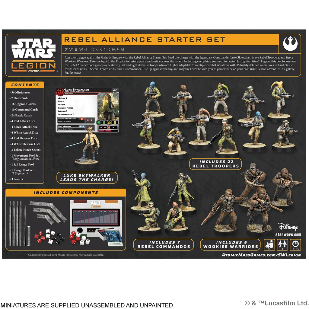 Únete a la lucha contra el Imperio Galáctico con la caja de inicio de la Alianza Rebelde. Lidera la ofensiva con el legendario comandante Luke Skywalker al frente de valerosos Soldados rebeldes y fieros Guerreros wookiees. Planta cara al Imperio para restablecer la paz y la justicia en toda la galaxia. Esta caja contiene todo lo necesario para empezar a jugar a Star Wars™: Legión con la facción de la Alianza Rebelde y sus mecánicas fundamentales, con tropas ligeras de ataque rápido capaces de adaptarse a múltiples situaciones de combate. Se incluyen 36 miniaturas de plástico esculpidas con todo lujo de detalle para desplegar 2 unidades de Tropa, 3 unidades de Fuerzas especiales y 1 Comandante. ¡Rebélate contra la tiranía, y que la Fuerza te acompañe en esta primera aventura de Star Wars: Legión en una galaxia muy, muy lejana!