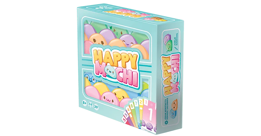 En Happy Mochi tienes que ser el primero en vaciar tu mano y quedarte sin cartas, pero cuidado, ¡que no es tan sencillo como parece! Tendrás que jugar las cartas de dos en dos y está terminantemente prohibido reorganizar tu mano, así que prepárate para darle al coco si quieres ganar la partida en este dulce y estratégico juego tipo party en el que la suerte y la táctica van de la mano.