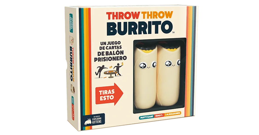 Throw Throw Burrito es el resultado de cruzar un juego de cartas con el balón prisionero en el que el objetivo es reunir conjuntos iguales más rápido que tus oponentes mientras esquivas y lanzas burritos voladores. Las cartas que recojas ganan puntos, pero si te golpean los burritos voladores los pierdes, así que despeja el salón y guarda las antigüedades, porque nunca has jugado a un juego como éste.