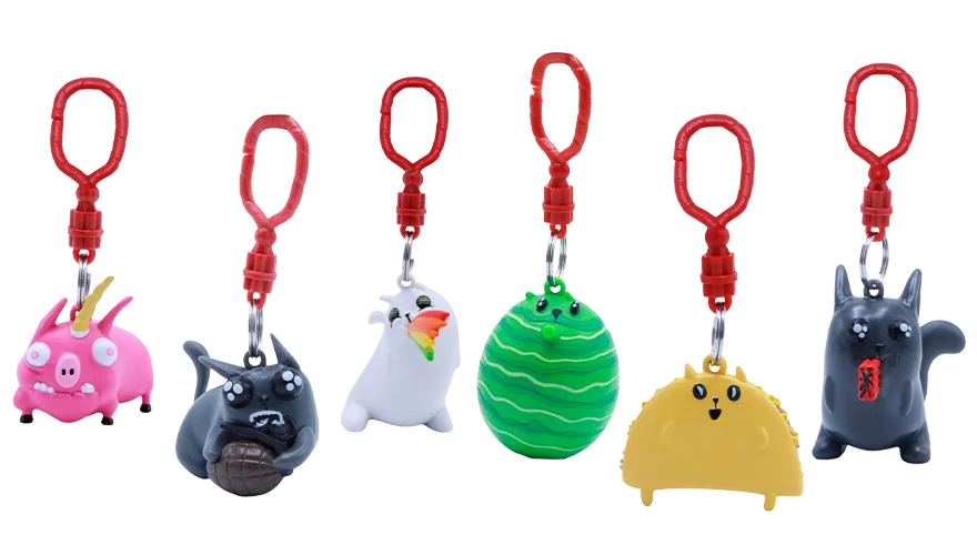 Este colgador de mochila oficial para minifiguras transforma a los queridos y extravagantes personajes del exitoso juego de cartas en divertidos accesorios coleccionables. Cada figura presenta colores vibrantes y detalles expresivos, complementados por un anillo seguro con clip que es perfecto para mochilas, llaveros, bolsos, etiquetas de equipaje, incluso como decoración de escritorio giratorio. Fabricado bajo licencia de Exploding Kittens y distribuido por Just Toys, cada mini percha ofrece un encanto de primer nivel con temática de juego con una sólida calidad de PVC.