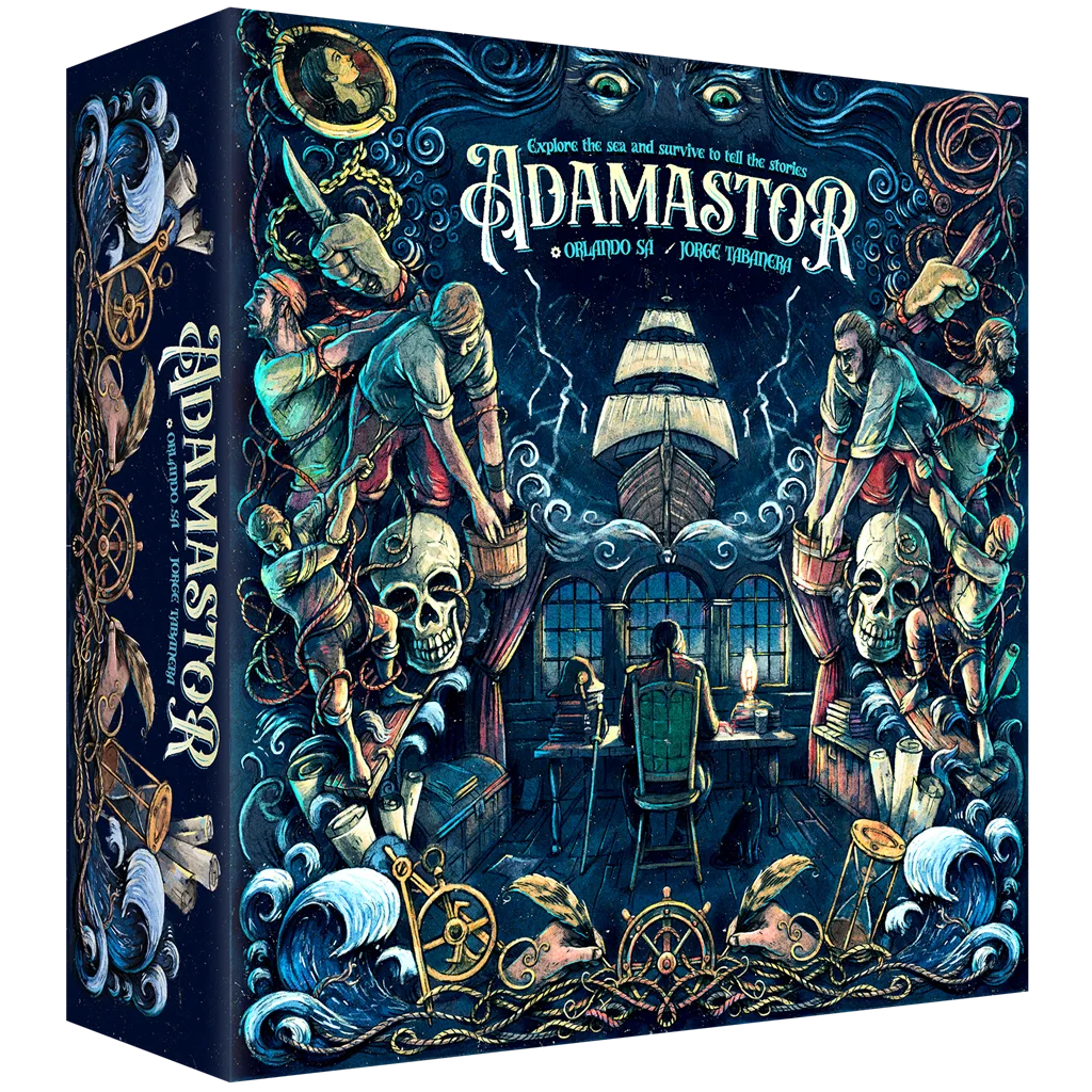 Adamastor es un juego solitario de gestión de cartas multiuso donde deberás buscar el equilibrio para que los contratiempos en forma de enfermedades, motines, escasez y traumas no pesen más que la esperanza y la sed de aventuras, consiguiendo así llevar tu embarcación hasta su destino final.