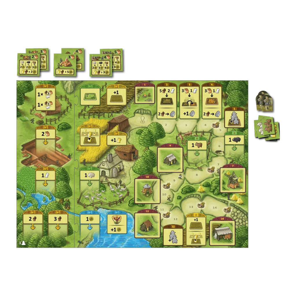 Para realizar acciones en Agricola, primero debes colocar a tus granjeros en las casillas de acción. Podrás obtener cereales, labrar campos o incluso construir un molino. ¡Así de fácil!