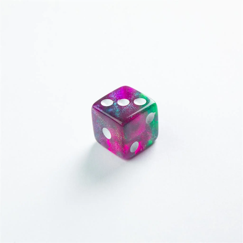 Galaxy Series: colores atrayentes y efectos resplandecientes gracias a sus partículas de purpurinaTodos los dados tienen bordes redondeadosLos puntos tienen…