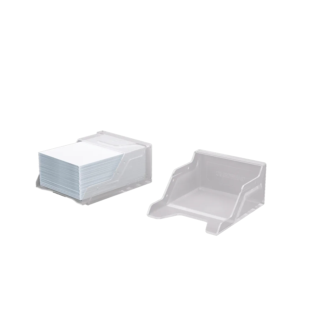 «¡Si vas a resistir, resiste como un bastión!». El modelo Bastion 50+ es una caja para mazos muy compacta y resistente que protege más de 50 cartas en doble funda con fundas interiores que se cierran Closable Inner Sleeves. También es perfecta para mazos de más de 55 cartas en doble funda con fundas interiores estándar. Dentro también caben los modelos Mini Snap, Slide Card Cases y Cube Pocket 15+. Podrás ver la parte superior del mazo sin tener que abrir la caja gracias a que está hecha de material translúcido y a la posición de las solapas de cierre. Su mecanismo de cierre innovador en un solo clic protege los mazos y, al mismo tiempo, permite acceder fácilmente a las cartas. La caja Bastion está formada por 2 partes simétricas que se convierten en una caja para tu mazo y en otra para tu mazo de descartes. Una caja perfecta para una gran variedad de juegos de cartas. Gracias a su diseño modular, cabe perfectamente dentro de otros modelos de Gamegenic. Incluye una pegatina con campo de rotulación que permite personalizarla. Está disponible en 10 colores diferentes, entre los que se incluyen versiones compatibles de color negro y transparente.