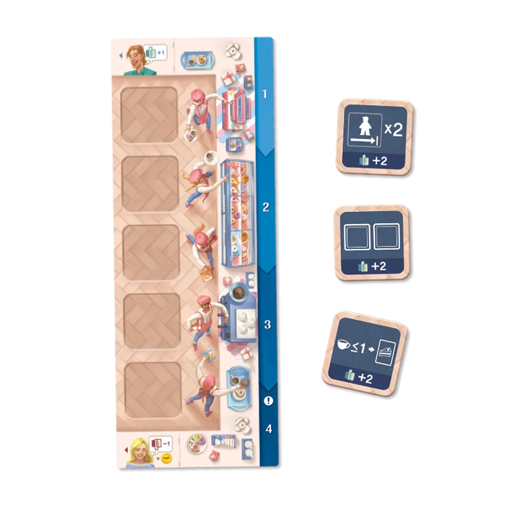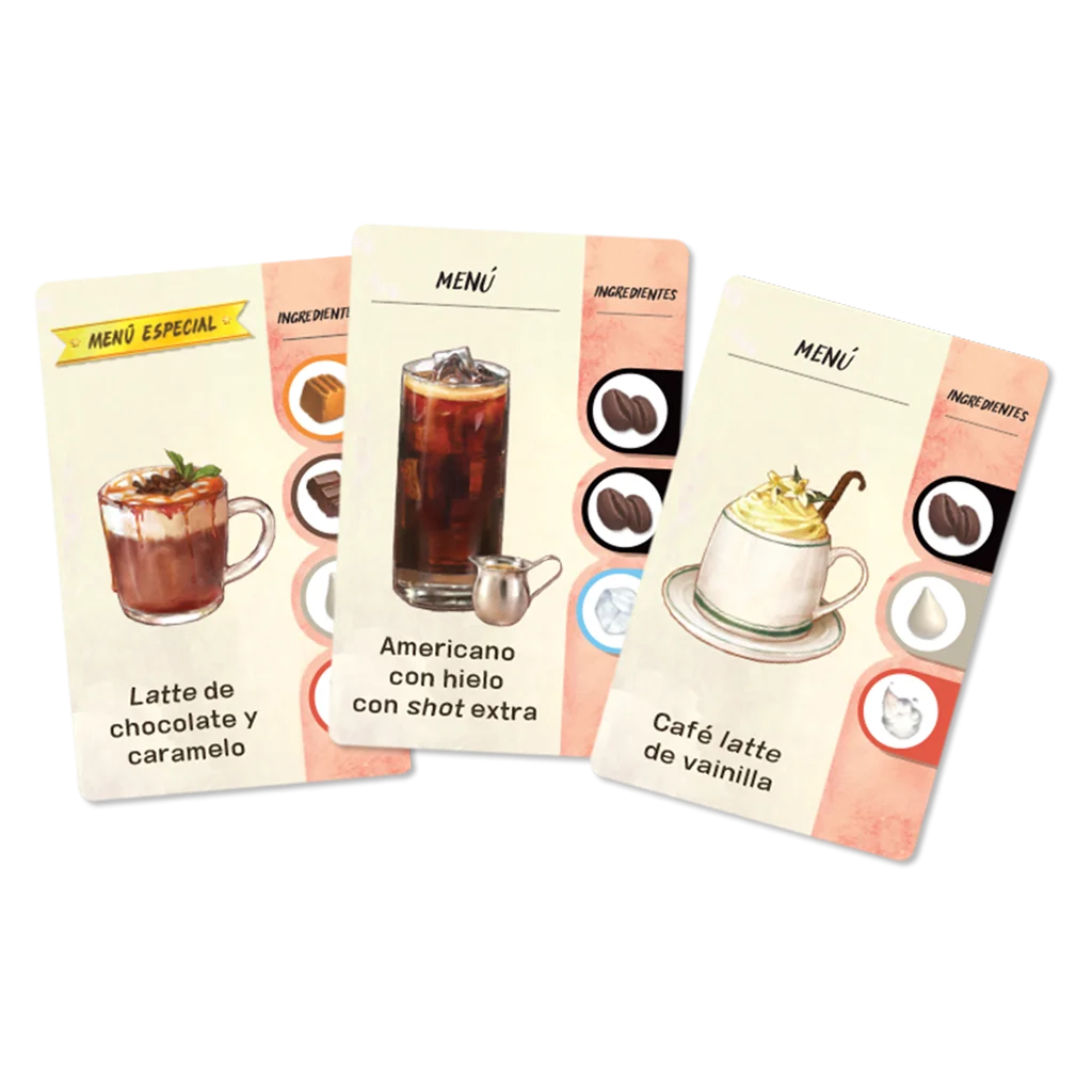Gana cartas de Tarta completando Pedidos con tartas. Juega las cartas de Tarta y obtén beneficios. ¡Nuevas bebidas! ¡Nuevas mejoras!