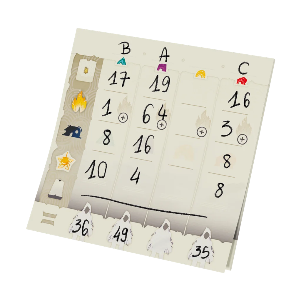 Para ganar en Dewan, competiréis entre vosotros por obtener la mayor cantidad de puntos. Lo haréis colocando vuestros Campamentos de forma estratégica para hacer el mejor uso del terreno y de los recursos, y así satisfacer los requisitos indicados en vuestras piezas de Historia. Durante la travesía, también recolectaréis bayas y dominaréis el fuego para obtener puntos adicionales.