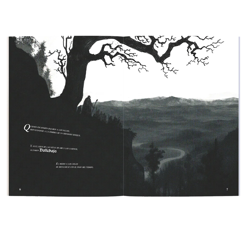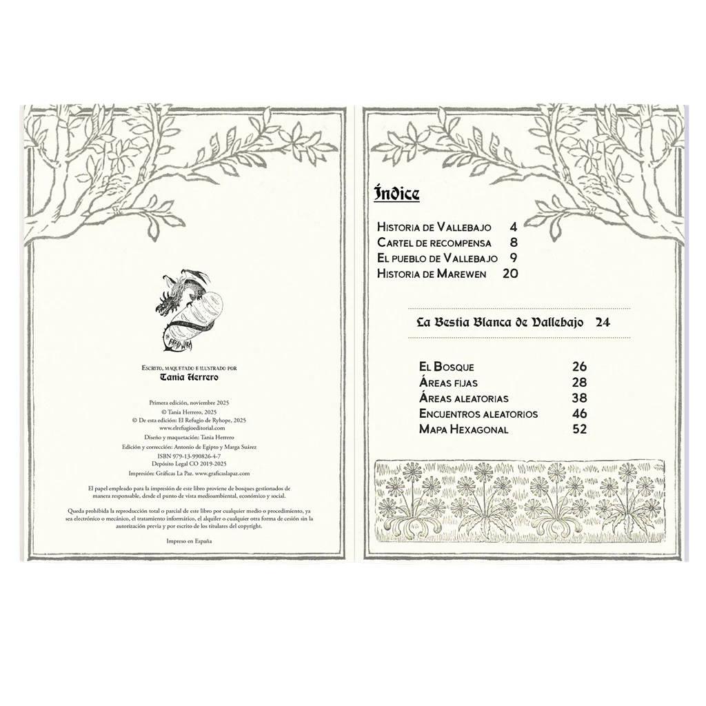 Un escenario folk horror, escrito e ilustrado por Tania Herrero, que cuenta la historia de Vallebajo y sus gentes. La Bestia Blanca, el Bosque y sus criaturas buscan venganza.