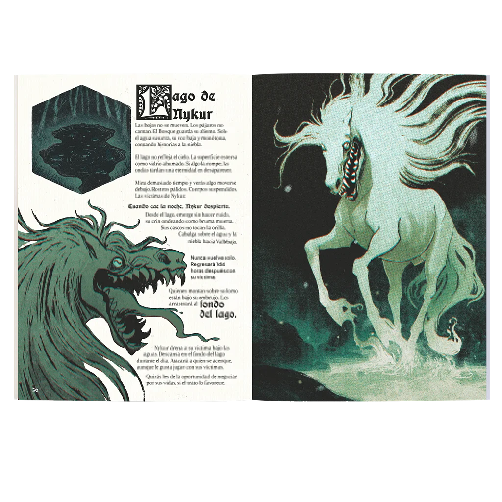 Cada página será para ti, lector, una fuente de inspiración. Las ilustraciones son profundamente evocadoras y las descripciones buscan crear una atmósfera que te ayudará a dar forma a este Bosque y sus habitantes mientras juegas, aunque nada te impide preparar de antemano los ganchos que la historia ofrece.