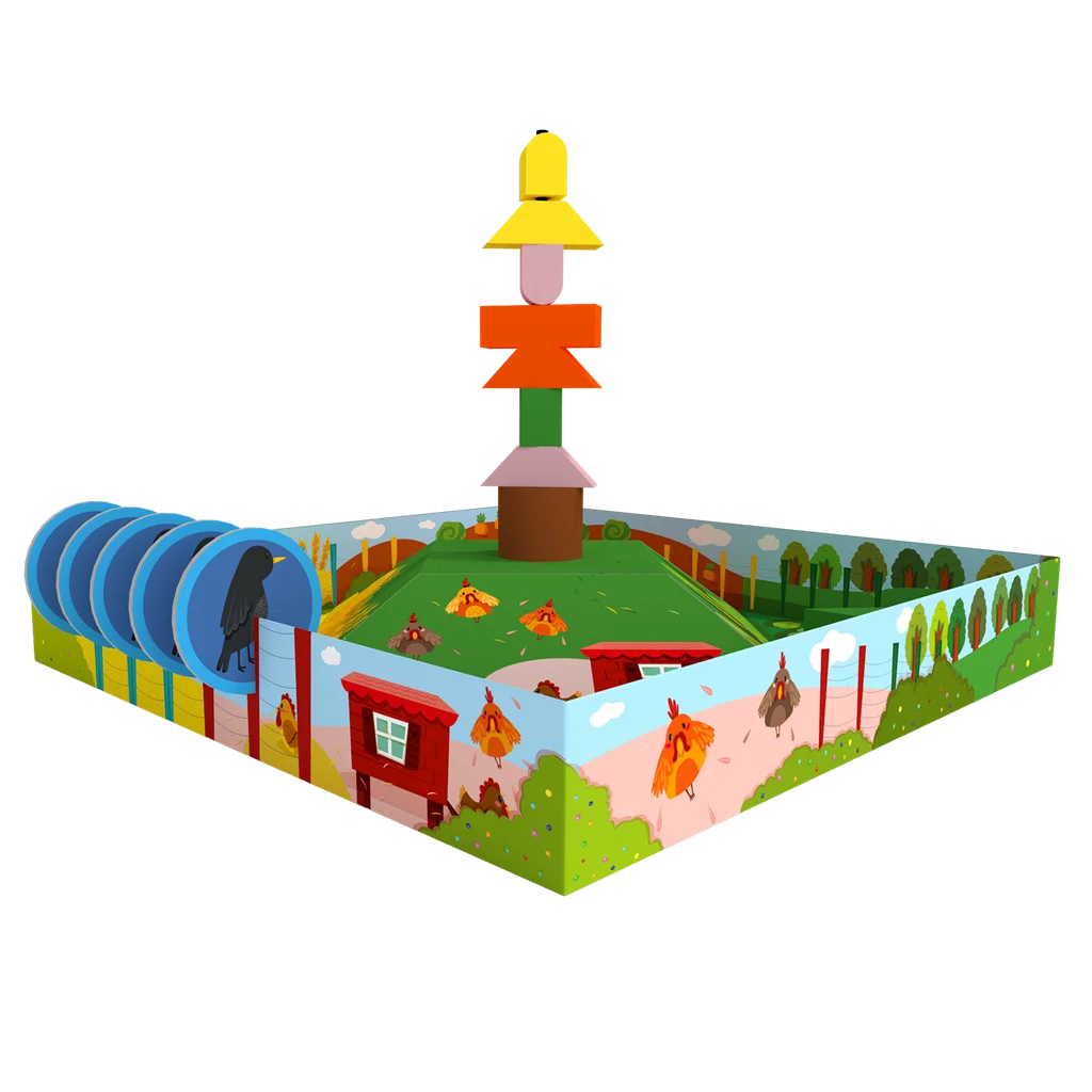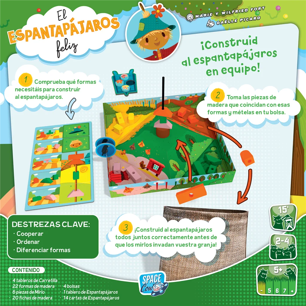 3. ¡Construid al espantapájaros todos juntos correctamente antes de que los mirlos invadan vuestra granja!