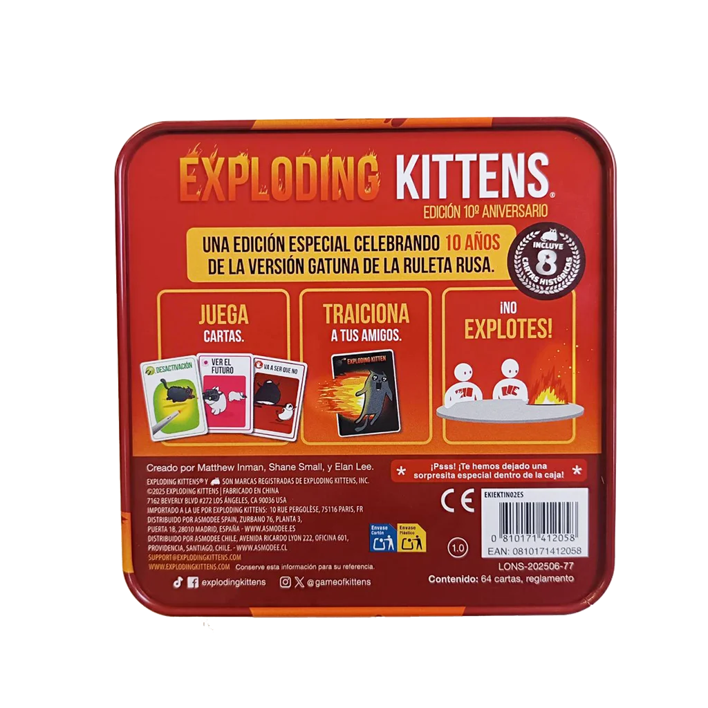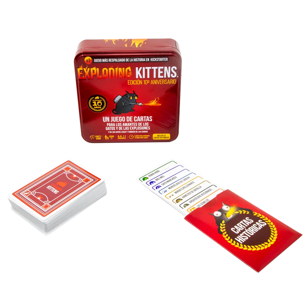 Una edición especial celebrando el 10º aniversario de Exploding Kittens El juego se trata de…