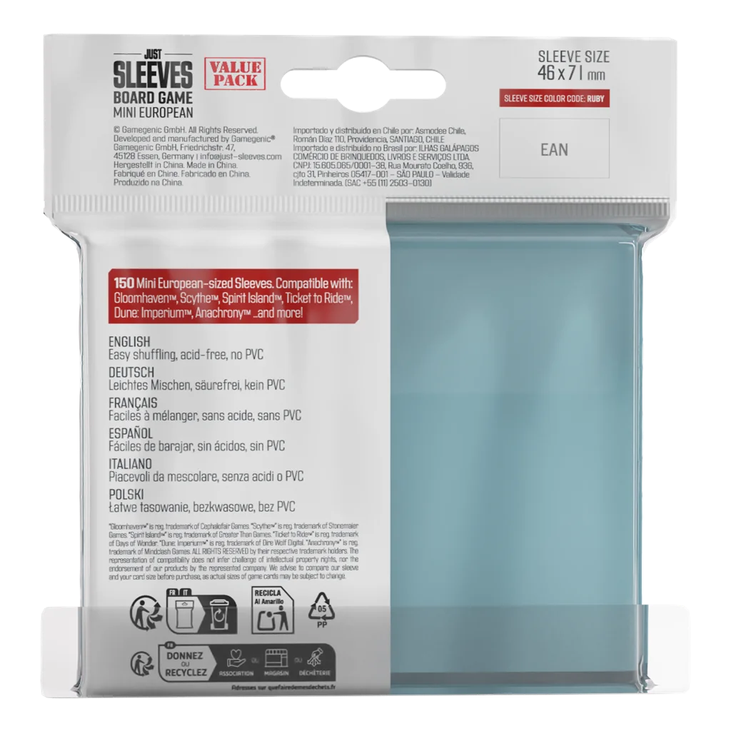 150 Mini European-sized Sleeves.Compatible with: Gloomhaven™, Scythe™, Spirit Island™, Ticket to Ride™, Dune: Imperium™, Anachrony™...…
