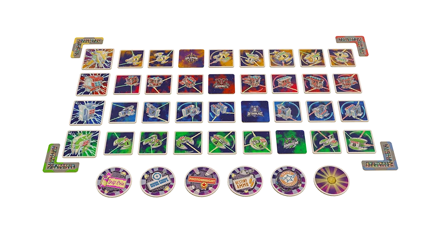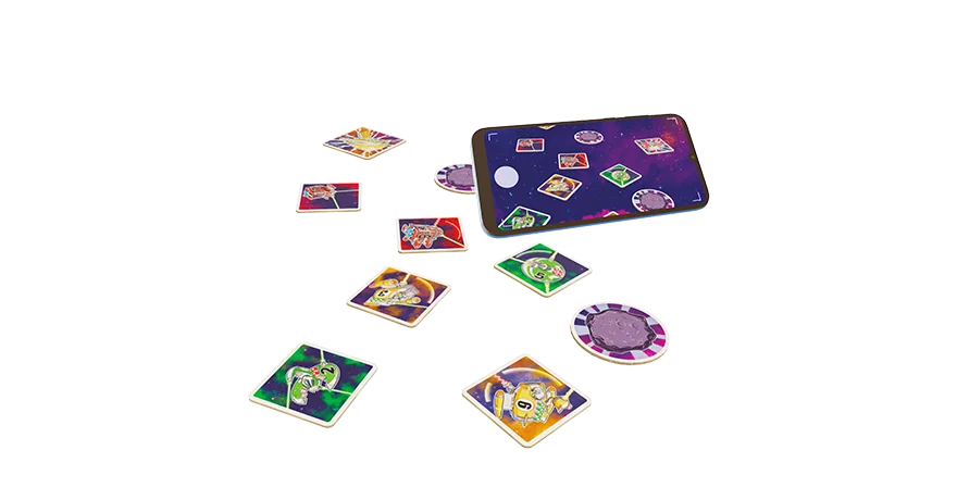 LIGHT SPEED: ARENA es un juego de mesa de disparos en tiempo real en el que apuntas con tus fichas y sacas una foto con un teléfono móvil o una tableta para que la aplicación desarrolle la batalla. Coloca y orienta estratégicamente tus naves espaciales en tiempo real para conseguir la mayor cantidad de puntos eliminando enemigos, recogiendo minerales de asteroides y complaciendo a los patrocinadores.