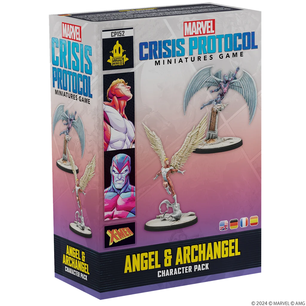 1 miniatura de Ángel, 1 miniatura de Arcángel, 2 peanas, 2 cartas de atributos de Personaje, 4 cartas de tácticas de equipo