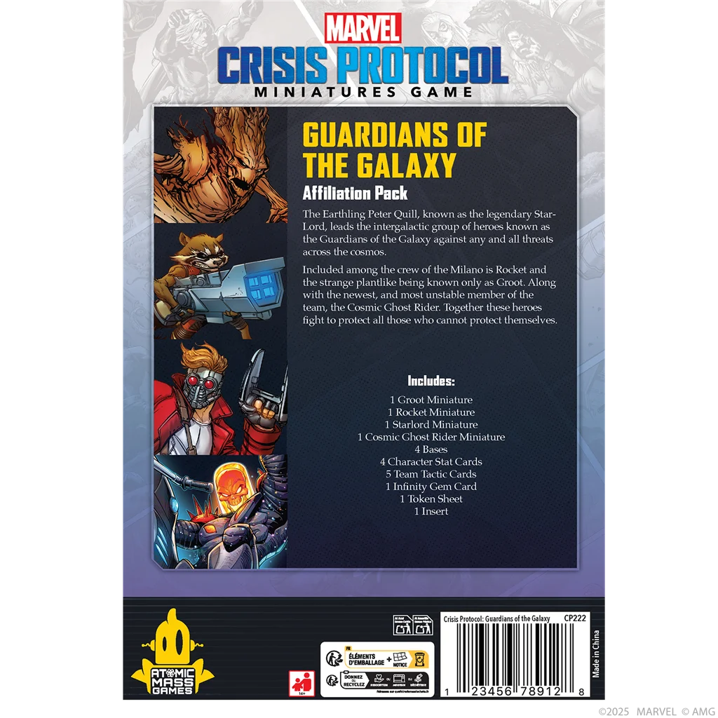 Es una expansión, requiere del juego básico Marvel Crisis Protocol Las miniaturas se suministran sin montar y sin pintar. A partir de 14 años.