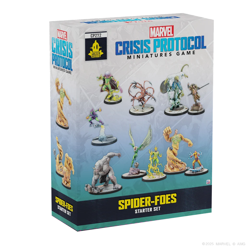 Esta Caja de Inicio se nutre de la élite de los Enemigos de Spiderman, ya que incluye al Duende Verde, Kraven el Cazador, el Lagarto, Mysterio, Conmocionador, el Hombre de Arena, Matanza, Rino, el Buitre y Electro, todos aunando fuerzas para crear un equipo de villanos de ensueño. Estos Personajes ofrecen a los jugadores una gran variedad de atributos y capacidades especiales a tener en cuenta al crear su Escuadra antes de jugar.