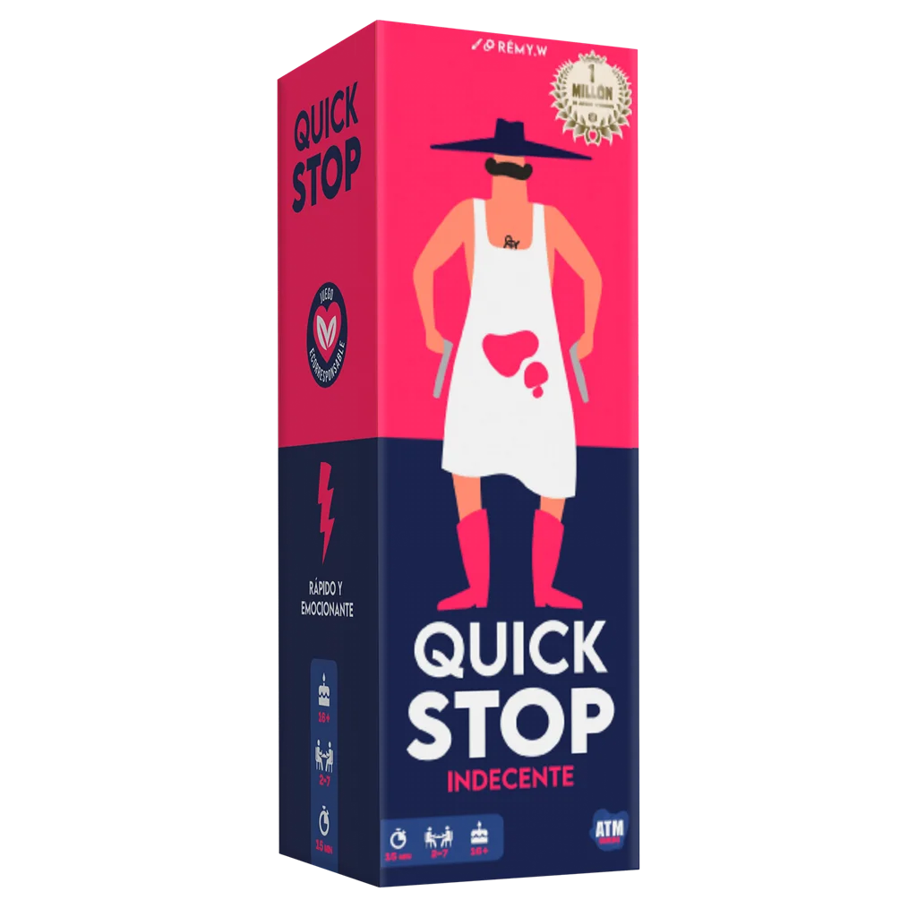 Quick Stop Indecente es la versión más rebelde del clásico juego: rápido, atrevido y perfecto para 2 a 7 jugadores. Deshazte de tus letras respondiendo categorías divertidas y descaradas.