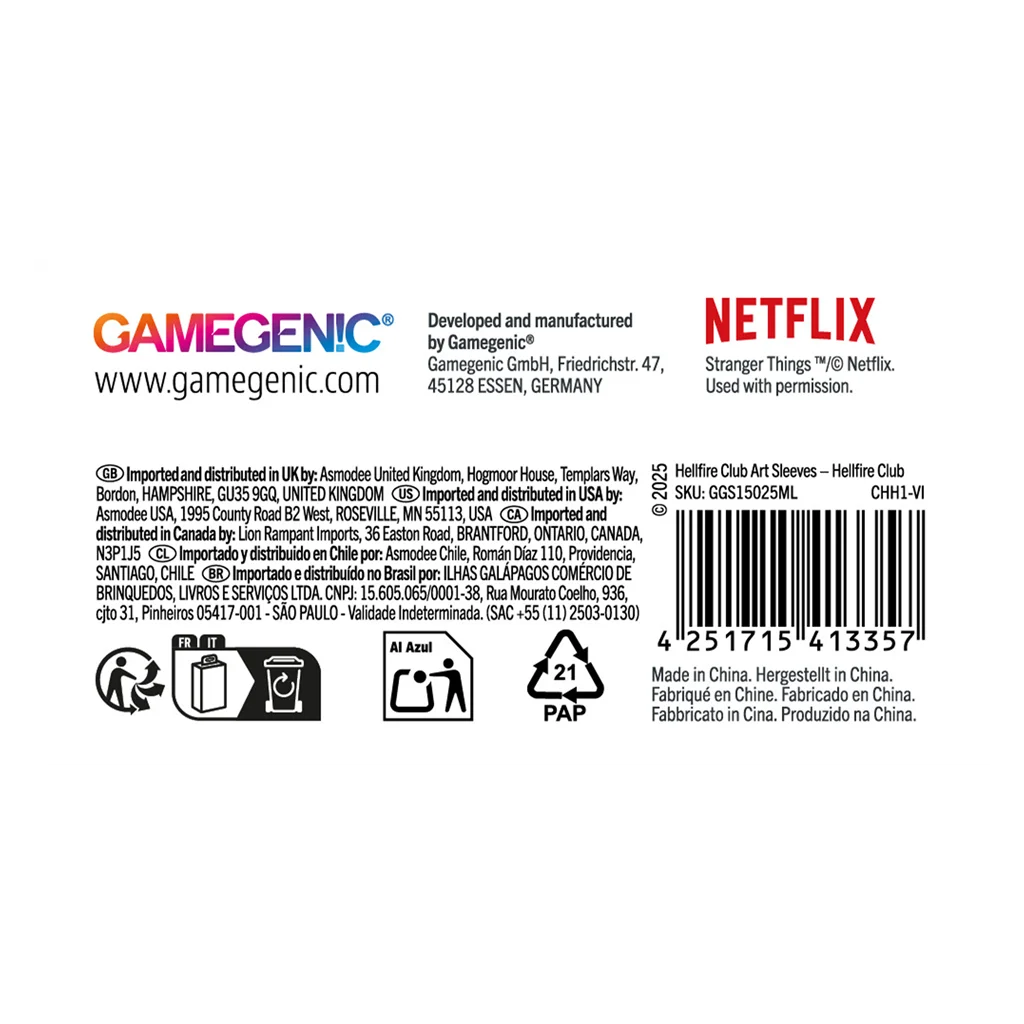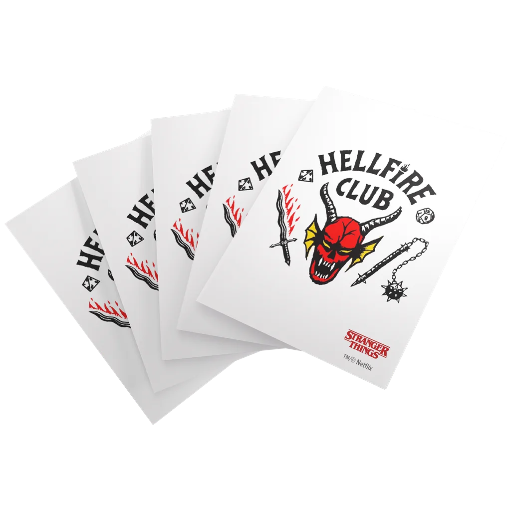 Las fundas Hellfire Club Art Sleeves de gran calidad mates, impresas a todo color y oficiales del club del Fuego Infernal son un accesorio imprescindible para cualquier fan de la serie Stranger Things™.