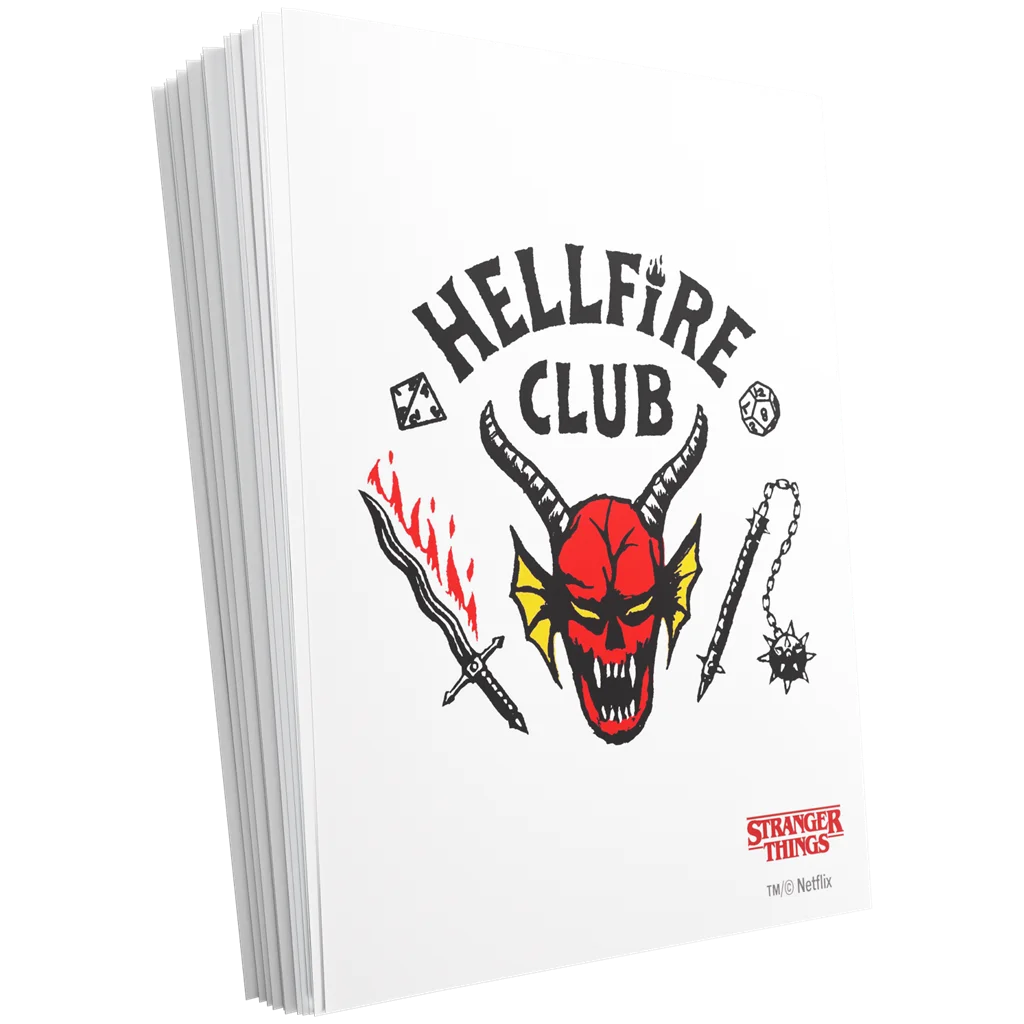 Las fundas Hellfire Club Art Sleeves de gran calidad mates, impresas a todo color y oficiales del club del Fuego Infernal son un accesorio imprescindible para cualquier fan de la serie Stranger Things™.