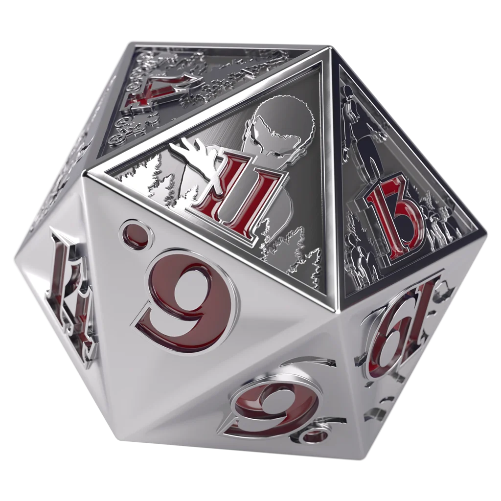 Gamegenic, en colaboración con Die Hard Dice, presenta este accesorio imprescindible para cualquier fan de la serie Stranger Things™. 10 de las caras de este dado único muestran 2 escenas repujadas exquisitamente del Mundo del revés, la dimensión alternativa misteriosa de la serie. Además, la cara 1 muestra la puerta entre las 2 dimensiones mientras que la cara 20 muestra al demonio del club del Fuego Infernal. Lo números están grabados en color rojo oscuro translúcido. Tanto los números como las escenas grabadas en los dados encajan perfectamente con la atmósfera única de Stranger Things™.