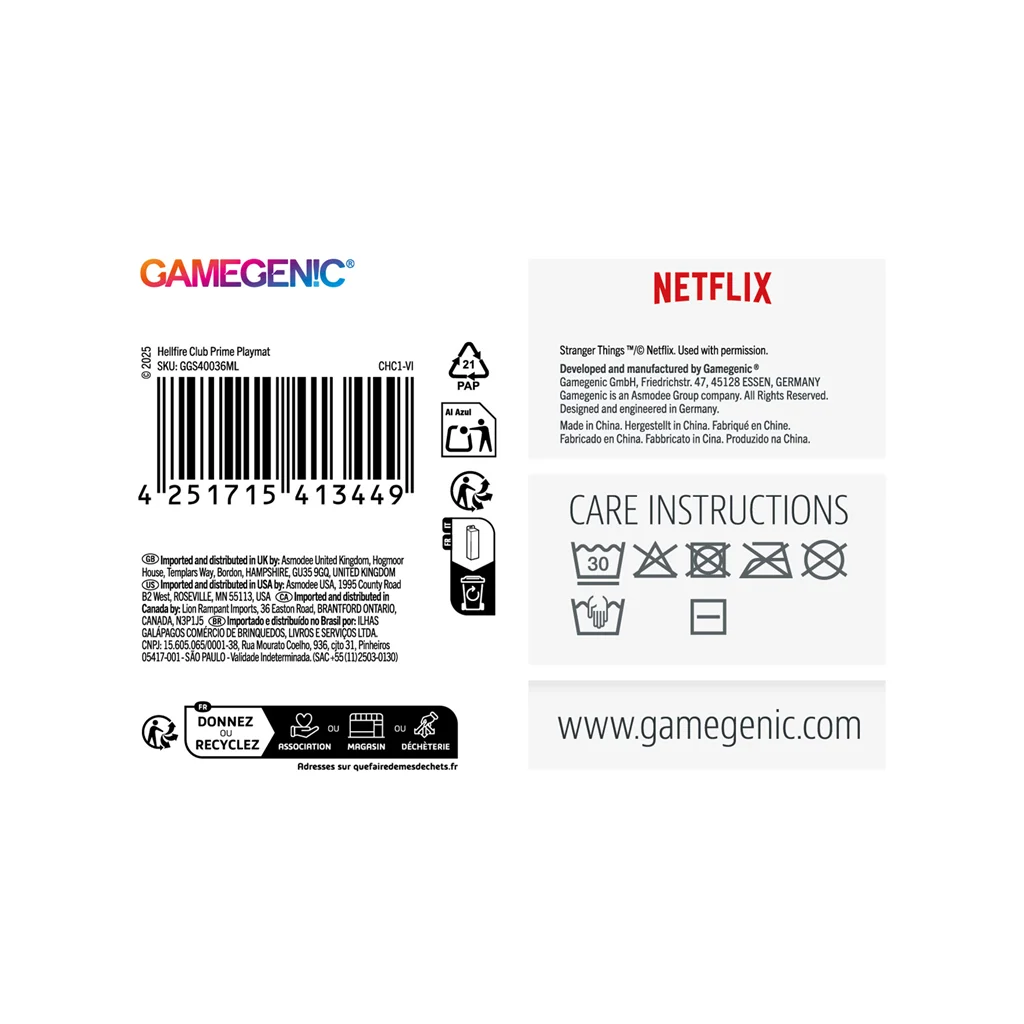 Este tapete, que está acolchado suavemente con un grosor de 2 mm, protege tus cartas de las superficies sucias o duras. Además, tiene una superficie muy fina y un reverso antideslizante que evitará que se mueva en la mesa. Tu experiencia de juego pasará a ser algo increíble gracias a su diseño fascinante, a su comodidad y a los materiales con los que está fabricado. También lo puedes usar en tu escritorio. El tapete Prime Playmat es perfecto para una gran variedad de juegos, juegos de cartas coleccionables, LCGs y para cualquier fan del club del Fuego Infernal y de Stranger Things™.