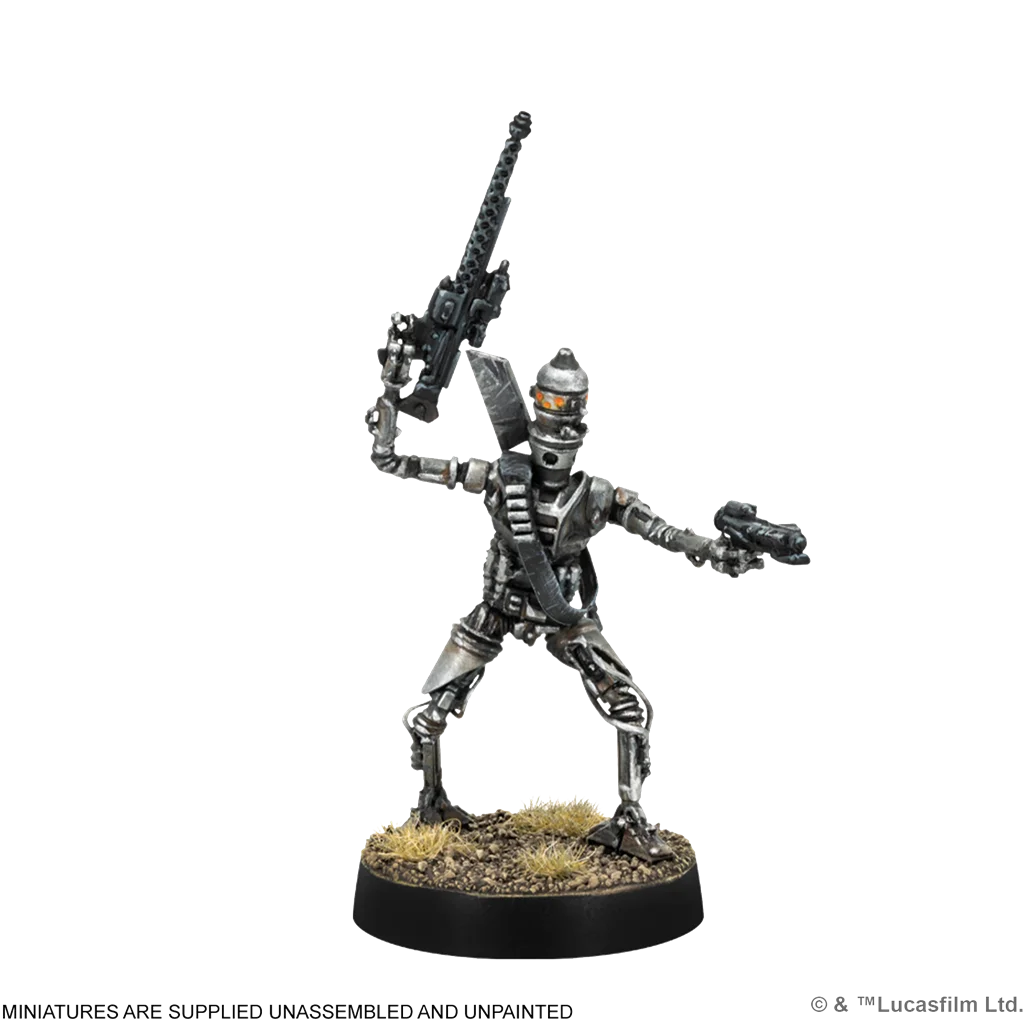 Los droides asesinos cumplen sus encargos con una eficacia despiadada sin importar el coste. IG-11 e IG-88 ofrecen sus servicios como Agentes a sueldo tanto a la Alianza Rebelde como al Imperio Galáctico sin ningún escrúpulo. Estos emblemáticos droides asesinos poseen habilidades de combate tan variadas como letales que les permiten abatir a múltiples objetivos mientras dan caza a sus presas.