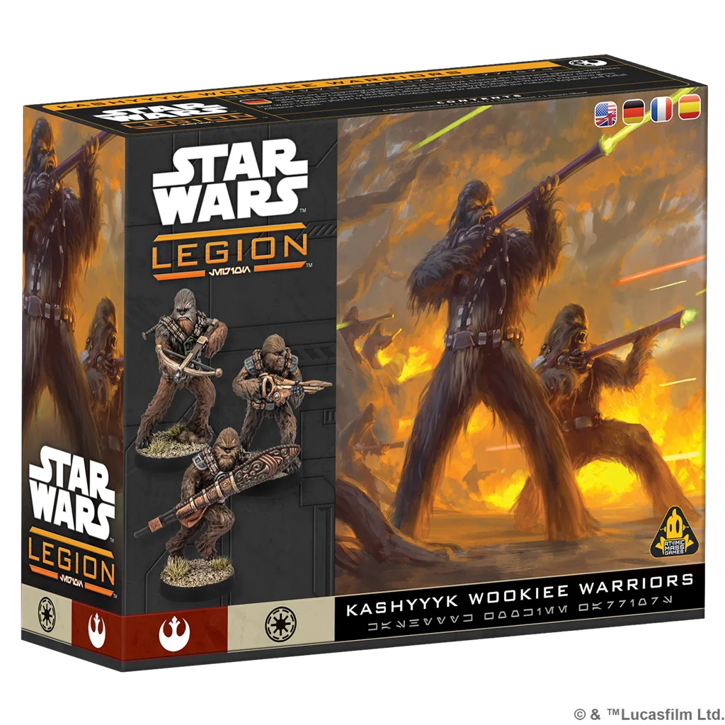Los wookiees son una especie formidable oriunda del planeta Kashyyyk. Durante la sublevación separatista, los wookiees se aliaron con la República Galáctica para frenar la invasión de la Alianza Separatista, y posteriormente contribuyeron a la restauración de la República como parte de la Alianza Rebelde. Esta expansión para Star Wars™: Legión contiene 6 miniaturas de Guerreros wookiees con las que puede formarse una unidad de Fuerzas especiales para ejércitos de la República Galáctica y la Alianza Rebelde.