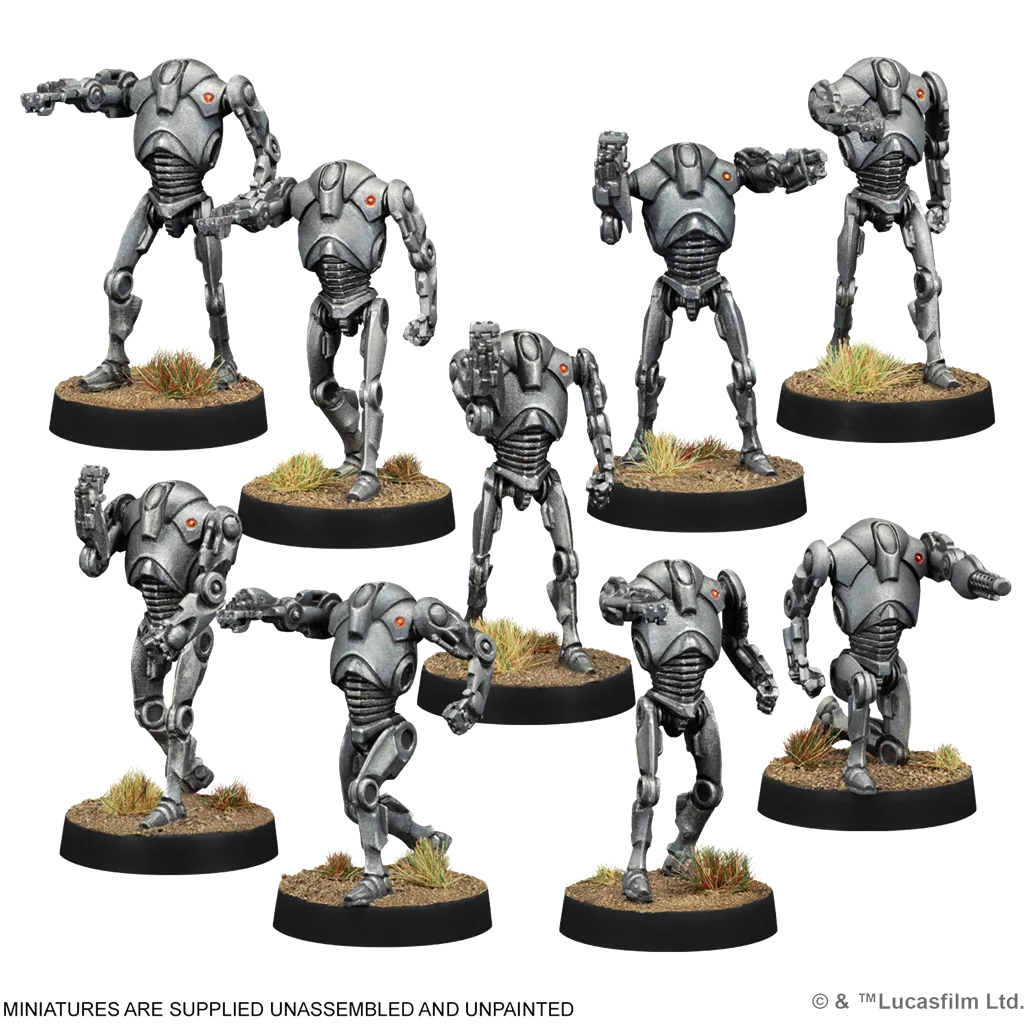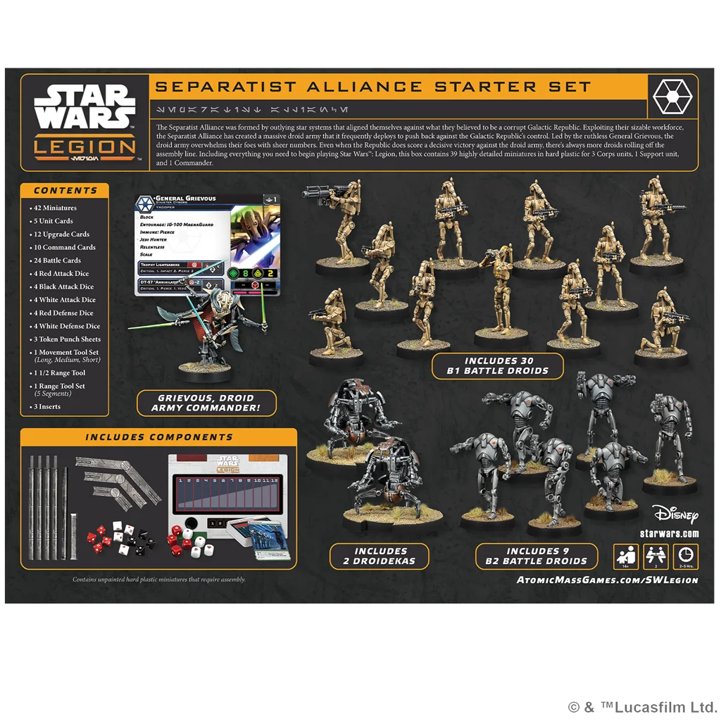 Aprovechando su ingente mano de obra, la Alianza Separatista ha creado un formidable ejército droide que despliega con regularidad para arrebatar el control a la República Galáctica. Liderado por el despiadado general Grievous, este ejército droide se sirve de su aplastante superioridad numérica para aniquilar a sus enemigos. Y pese a la ocasional victoria decisiva de la República, las fábricas separatistas no dejan de producir droides para reforzar su ejército. Todo lo que necesitas para jugar a Star Wars™: Legión está en esta caja: 39 miniaturas de plástico esculpidas con todo lujo de detalles para desplegar 3 unidades de Tropa, 1 unidad de Apoyo y 1 Comandante.