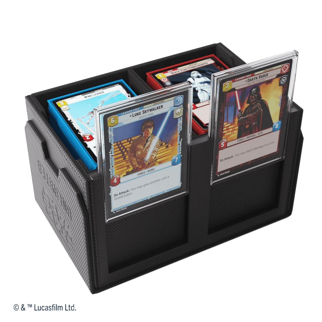 - Las 2 fundas se pueden extraer para usar las cartas de Líder durante las partidas