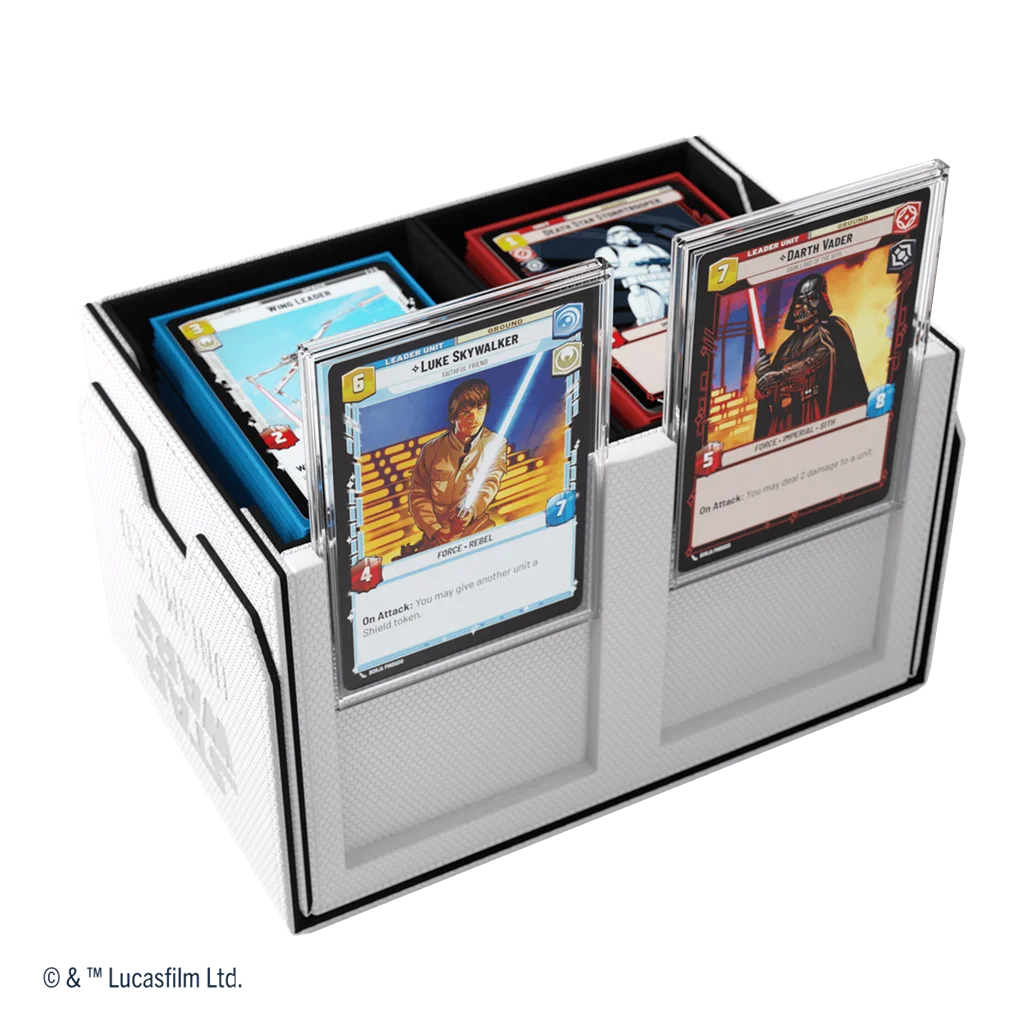 - Las 2 fundas se pueden extraer para usar las cartas de Líder durante las partidas