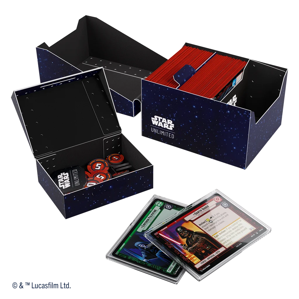 Cabe un mazo completo de 60 cartas con doble funda e incluye una caja adicional para accesorios - Perfecta para todos los fans de Star Wars™: no solo sirve para STAR WARS™: UNLIMITED, sino que se puede usar con muchos otros juegos, LCGs y juegos de cartas coleccionables