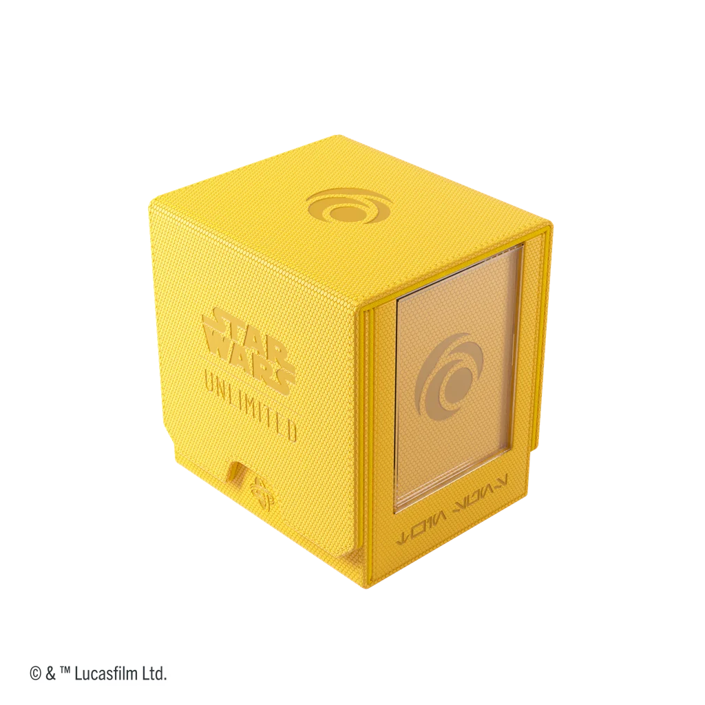 La novedosa caja TWIN SUNS Deck Pod de gran calidad y licencia oficial está diseñada específicamente para el popular formato TWIN SUNS Star Wars™: Unlimited. TIENE UNA CARACTERÍSTICA ÚNICA: esta caja incluye 2 fundas Slide Card Cases con protección UV adicional para que las 2 cartas de líder estén a salvo. Gracias a la colocación de estas cartas, el mazo se podrá identificar sin abrir la caja. Las 2 fundas Slide Card Cases se pueden extraer durante las partidas.