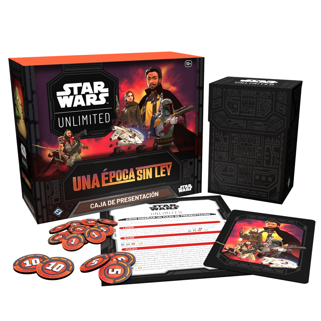 ¡Estrénate en la experiencia de juego organizado de Star Wars™: Unlimited con esta caja de presentación! Dentro encontrarás 6 sobres de ampliación con los que podrás diseñar tu primer mazo, así como versiones promocionales exclusivas de las cartas de líder de Jabba el Hutt y Leia Organa. Hazte con esta caja y participa en el torneo de presentación con mazos cerrados que organizará tu tienda habitual: ¡es el medio ideal para iniciarte en la séptima colección de este juego de posibilidades ilimitadas!