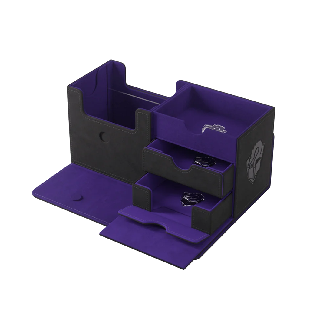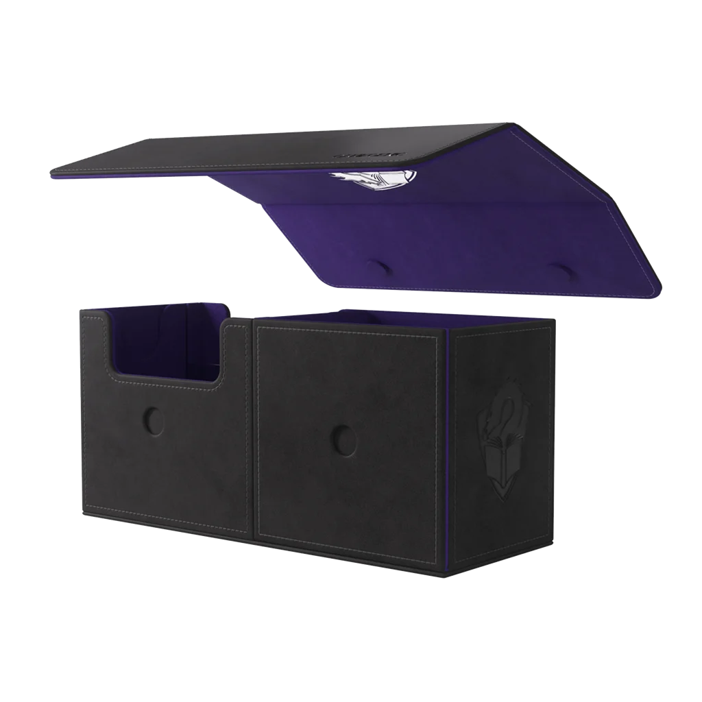 Esta caja increíble puede guardar más de 133 cartas en doble funda con fundas interiores gruesas (Thick Inner Sleeves)*, además de algunos accesorios. Gracias a sus detalles innovadores, esta caja es todo lo que necesitas para que tus noches de juego sean perfectas. Además, es muy versátil y se puede usar con muchos juegos, así que cumple con las expectativas de los jugadores más exigentes.