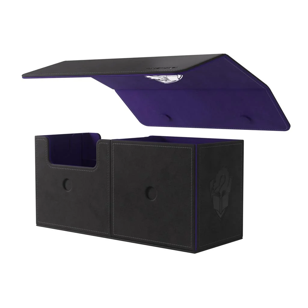 Esta caja increíble puede guardar más de 133 cartas en doble funda con fundas interiores gruesas (Thick Inner Sleeves)*, además de algunos accesorios. Gracias a sus detalles innovadores, esta caja es todo lo que necesitas para que tus noches de juego sean perfectas. Además, es muy versátil y se puede usar con muchos juegos, así que cumple con las expectativas de los jugadores más exigentes.