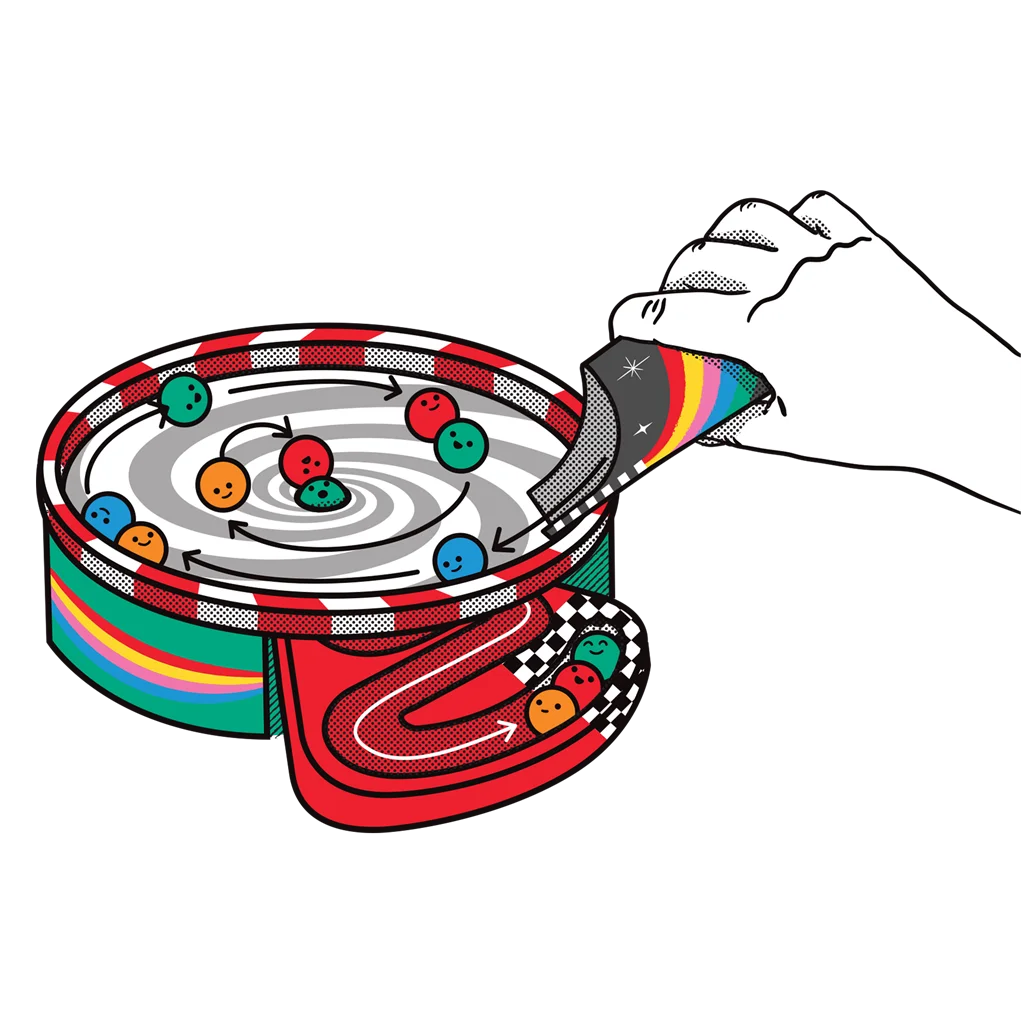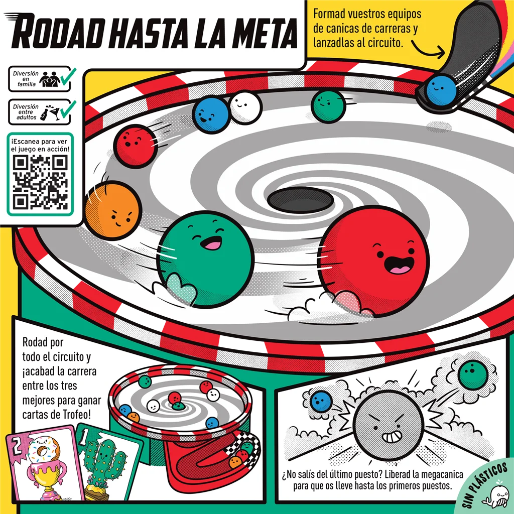 - Formad vuestros equipos de canicas de carreras y lanzadlas al circuito.